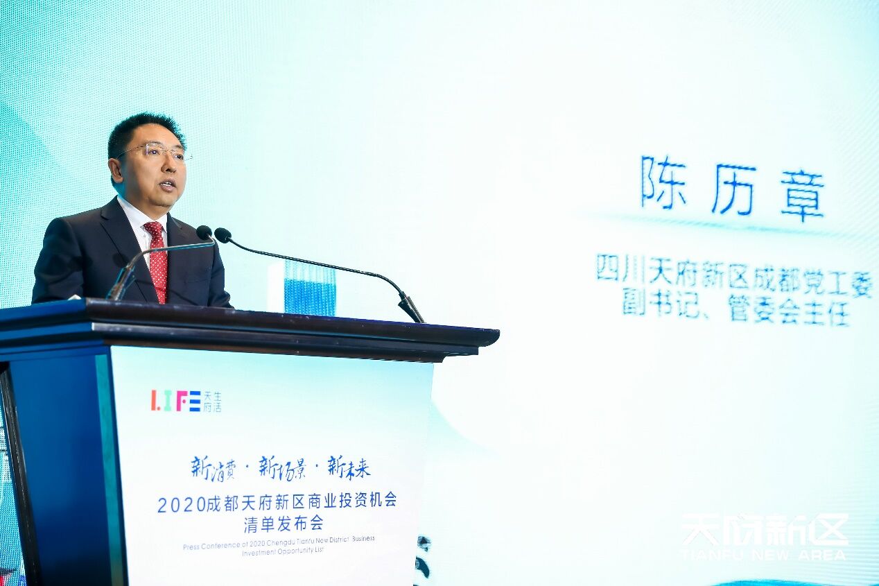 四川天府新区成都党工委副书记、管委会主任陈历章在致辞中表示,成都,自古因商而立、因商而兴。天府新区,是全国19个国家级新区之一,是成都未来城市新中心。新区践行“公园城市首提地”使命担当,坚守70%生态空间占比,吸收全球顶级规划的先进理念,“林湖交汇、蓝绿交织”的生态本底,为营造消费场景提供绝佳的自然环境和物理空间。新区位于两大国际机场连线的黄金分割点,四通八达的轨交规划、纵横交错的交通体系、链接全球的开放平台,为新区商业发展提供巨大市场和流量牵引。新区西部国际博览城都市级商圈正在起步,锦江·麓湖、成都科学城、天府文创城3个特色区域商圈加快布局,为植入各类高品质消费新场景提供广阔空间和难得机遇。