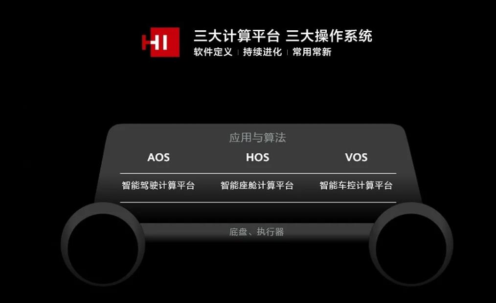 HI包括三大计算平台,智能驾驶计算平台、智能座舱计算平台和智能车控计算平台,以及三大操作系统AOS(智能驾驶操作系统)、HOS(智能座舱操作系统)和VOS(智能车控操作系统)。可以利用强大的算力和操作系统的支持,实现软件定义汽车,并对汽车持续展开开发功能,不断提升和优化消费者的用车体验,做到常用常新。