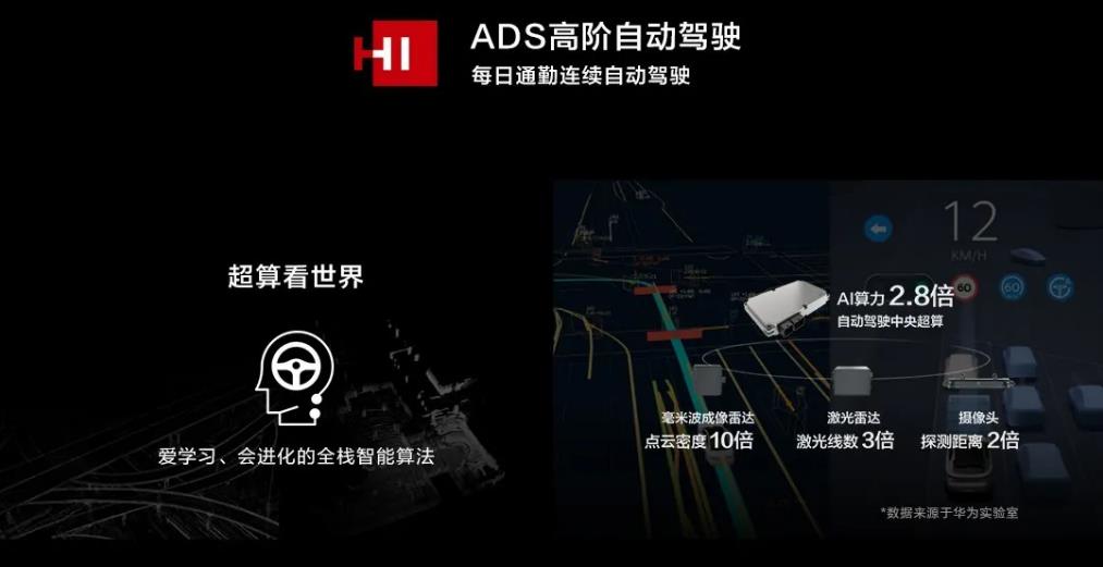 在智能驾驶方面,HI高阶自动驾驶ADS以L4级自动驾驶架构为基础,提供面向L4~L2+级自动驾驶全栈解决方案(包括传感器、中央超算、算法)。另外,其还有机器自我学习技术。