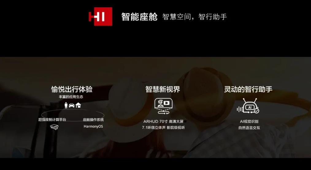 不仅如此,华为HI还拥有全新智能座舱。根据介绍,HI智能座舱采用自研计算平台、Harmony座舱操作系统,有丰富的应用生态。ARHUD 可以把普通的挡风玻璃,变成一个70寸高清大屏,结合7.1环绕立体声,用户可以看电影、打游戏、开视频会议,打开智慧新视界。