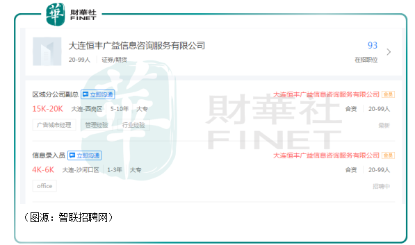 结果与卓聘平台相似,这些二线城市的前100大公司很多存在明显问题。如大连的北京融汇天诚投资管理有限公司从今年8月起经营即出现异常。大连恒丰广益信息咨询服务有限公司在去年10月份已申请注销。