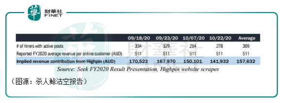 机构又在五个星期内四次扒下卓聘上的招聘信息,在去掉过期招聘信息之后,平台平均只有309家高端公司客户,按每个客户每年贡献511澳元(约2466元)计算,卓聘每年只贡献15.76万澳元收入,只是公司宣称1000万+澳元收入的十分之一不到。