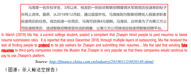 在沽空报告中,杀人鲸痛陈智联招聘六点不是: