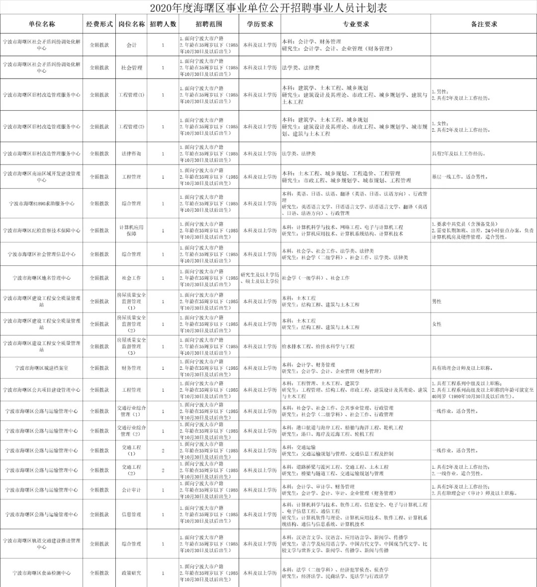 具体招聘单位、岗位、人数和招聘条件,详见以下表格。