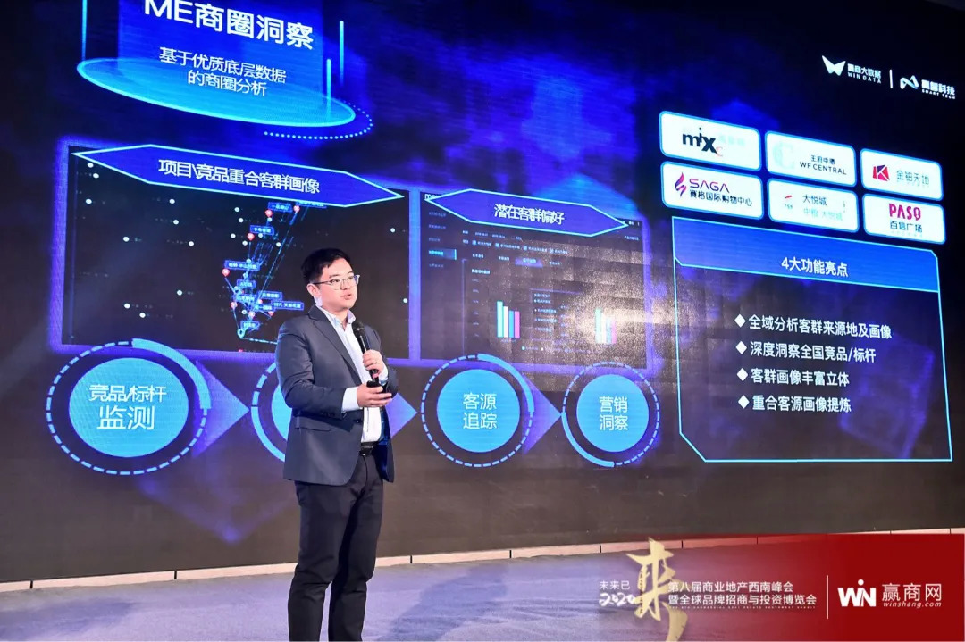 朱总结合时下热门的“数字化”概念,深度剖析了商业地产的数字化升级的3个阶段:基础设施的物联化,业务/触点的在线化,运营数据化/决策智能化。朱总还对赢智科技的城市商业地图、赢招商以及今年爆火的的线上营销平台这3大产品,结合实例展开了多维的介绍分析,展现赢智科技利用数字化手段帮助提升商业运营能力和效率,赋能商业发展的强劲实力。