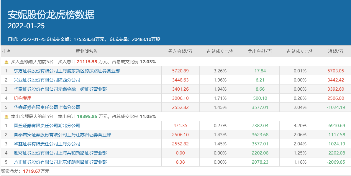 另外,还有一个机构专用席位当日居于安妮股份买方第四位,买入金额为3006.1万元。