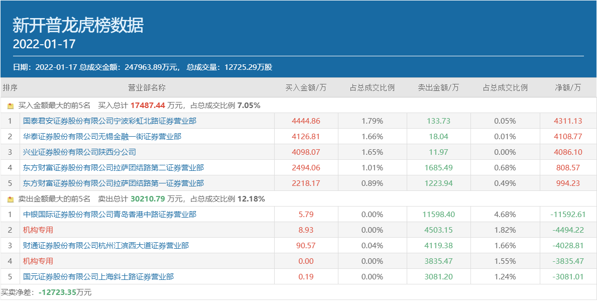数字政通是中国领先的智慧城市核心应用与运营服务提供商,数据显示,1月17日该股龙虎榜买方前五位均被知名游资常用席位占据,合计的买入金额为2.2亿元。