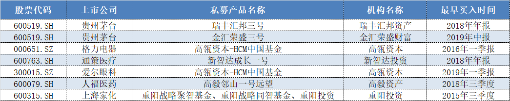 据私募排排网数据,被私募持有超过两年的股票有6只,分别是贵州茅台(600519)、格力电器(000651)、通策医疗(600763)、爱尔眼科(300015)、人福医药(600079)和上海家化(600315)。