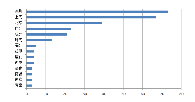 图:年内“翻倍基”所在私募办公城市分布情况