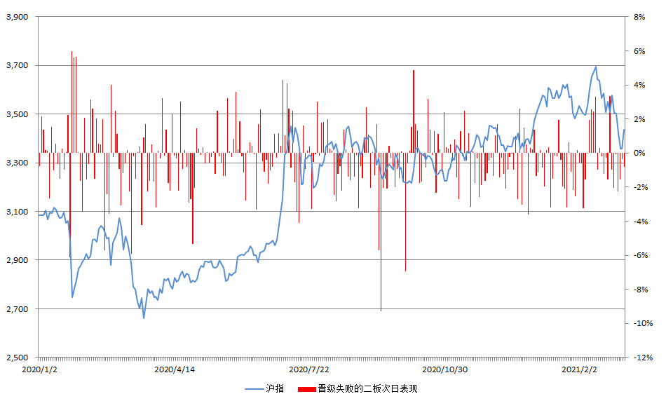 图:2020年以来晋级二板失败的个股次日表现情况 数据来源:聚宽
