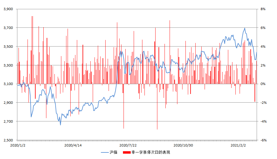 图:2020年以来非一字首板个股次日股价表现情况 数据来源:聚宽