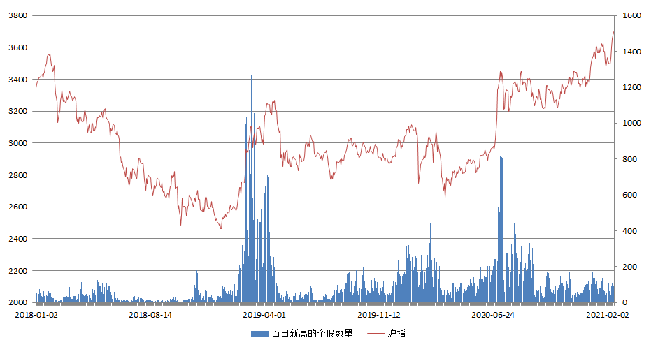 图:2018年以来百日新高个股数量情况 数据来源:聚宽