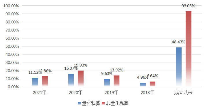 图:近年来量化私募产品和非量化产品的平均收益情况