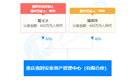 与此同时,黄冰冰曾持有已注销的重庆惠时安泰资产管理中心60%股权,该公司的另外一名股东为蒲辉祥,持股比例为40%。