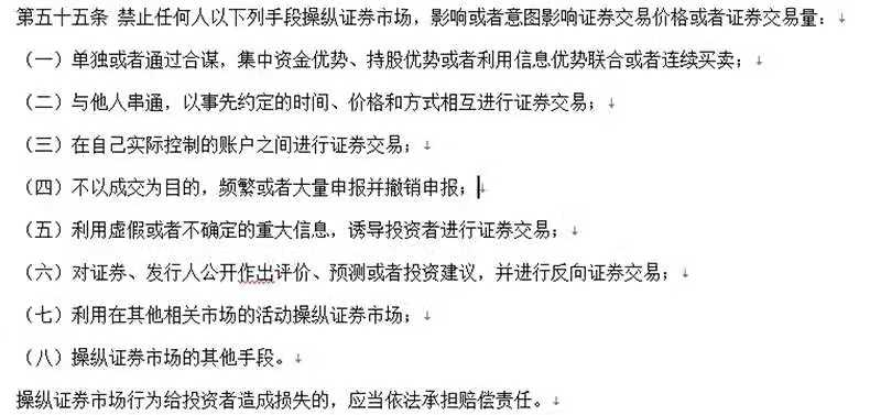 2020年3月1日起施行的新版《中华人民共和国证券法》第五十五条明确,禁止任何人以下列手段操纵证券市场,影响或者意图影响证券交易价格或者证券交易量: