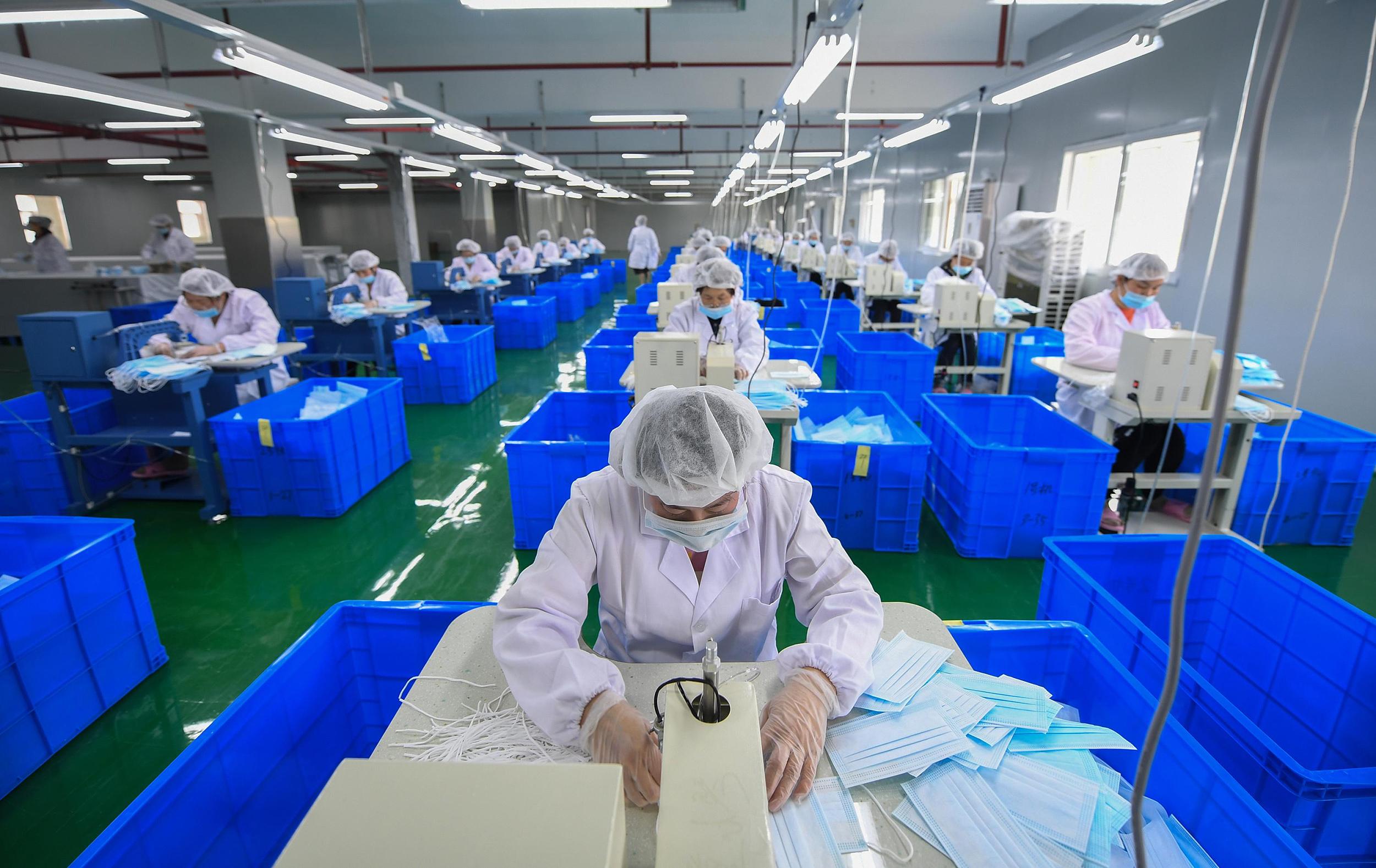 突如其来的新冠疫情改变了行业的颓势。作为重要防疫物资,口罩和防护服的需求量大增,彭场镇大大小小的无纺布厂开足马力,满负荷生产。数以亿计的口罩从这里被运往武汉、全国,以及海外。