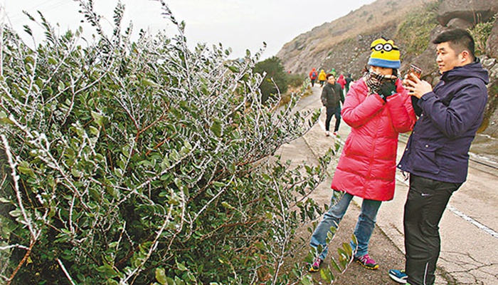 而香港一些高山的气温更低,位于市区边缘的香港最高峰——大帽山气温低至零下5度,出现冻雨及结冰报告。