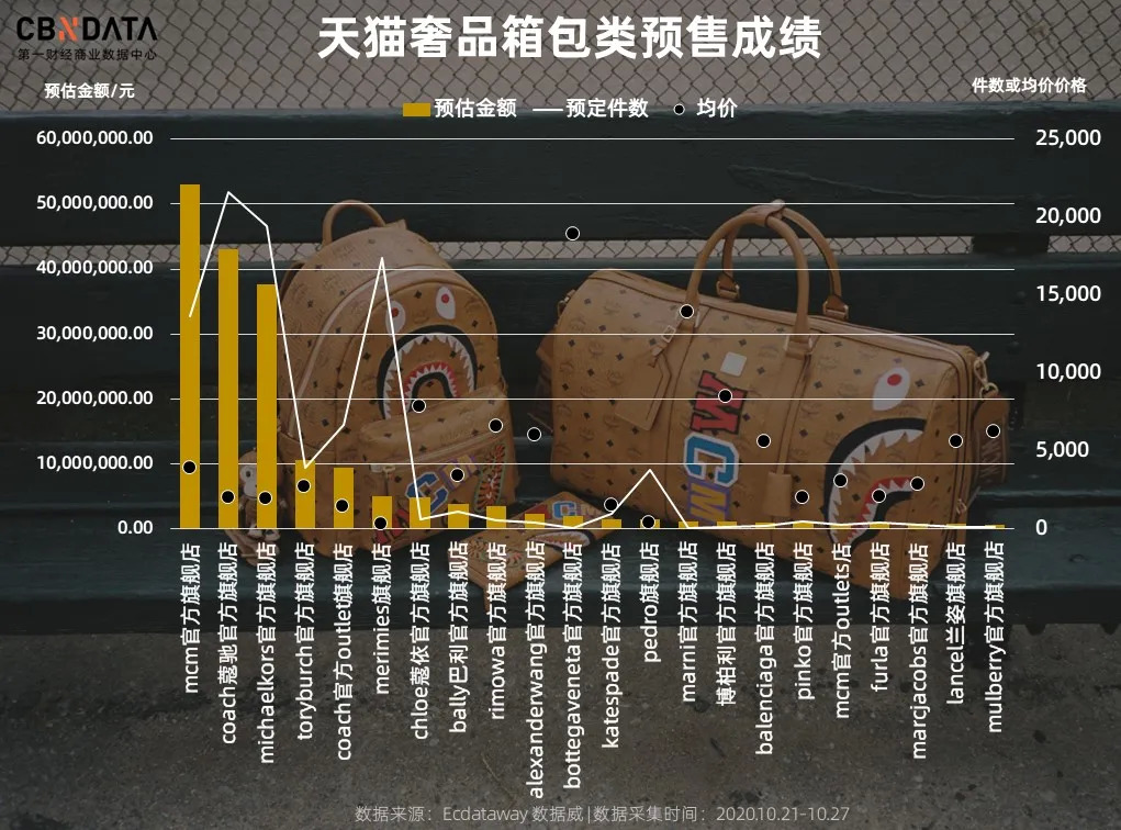 本次预售环节中,不少奢侈品牌就给出了不错的直播成绩。譬如Coach仅在10月20日-24日间,通过直播卖出7681件商品,价值1200多万;MCM则创下了1529件销量,553万销售额的纪录,也就是说平均客单价高达3000余元。Tony Burch天猫旗舰店预售成绩最好的一款手袋登上了李佳琦的直播间,售出了1000多件。