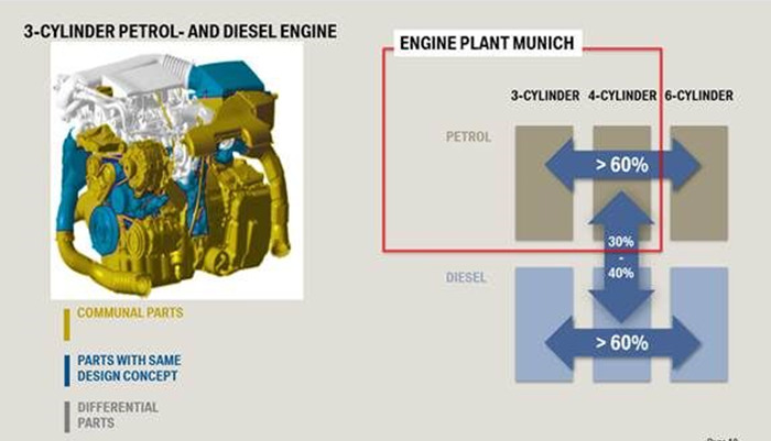 由于采用以气缸单元为基础的模块化,所以宝马新的B系列3, 4, 6缸汽油发动机之间有超过60%的部件可以共享,柴油版3,4,6缸机也同样如此。此外,模块化汽、柴油发动机发动机之间也有30%到40%的零部件可以共享。除了拥有较高的零部件通用率之外,统一的共线生产流程也是模块化发动机的优势之一。这对于包括华晨宝马发动机厂在内的模块化发动机厂来说意义重大。一方面可以实现生产不同排量、不同结构发动机共线生产;另一方面还可以灵活排产。可以根据每一个工厂的具体情况进行生产流程的优化,同时也能对市场发展和消费者需求做出快速的反应。当前华晨宝马发动机工厂仅对3、4缸发动机进行生产,还没有投产6缸发动机的计划。