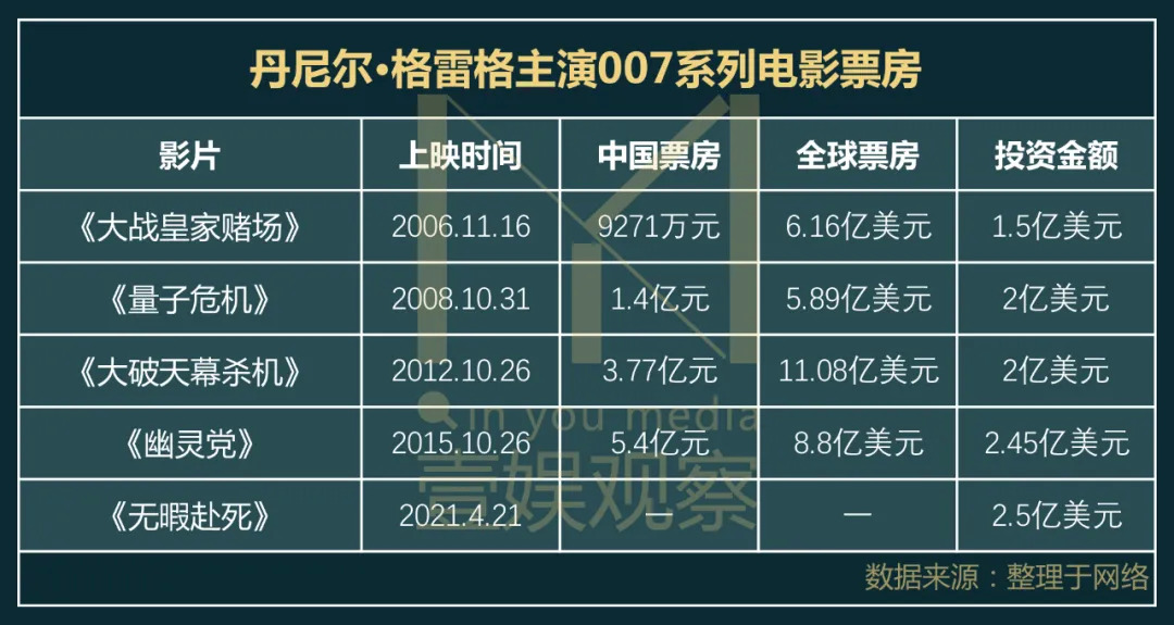 《007:无暇赴死》作为该系列第25部作品,丹尼尔·格雷格的“退休”之作,可以说是近十五年最具情怀和票房号召力的作品,其投资金额创系列最高,达2.5亿美元。