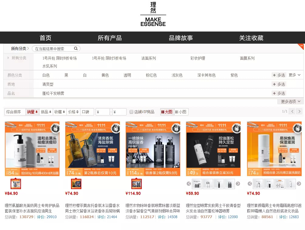 根据各品牌天猫旗舰店的数据显示,理然销量最高的是一款售价84.9元的氨基酸洗面奶,总销量是13万+;亲爱男友在天猫卖得最好是一款留香沐浴露,总销量为4.6万+,售价是69.8元;蓝系男士护肤套装礼盒销量最高,总销量为7770,售价是109元;HeyBro销量最高的是一款防脱发搽剂,总销量为7511,售价是114元。