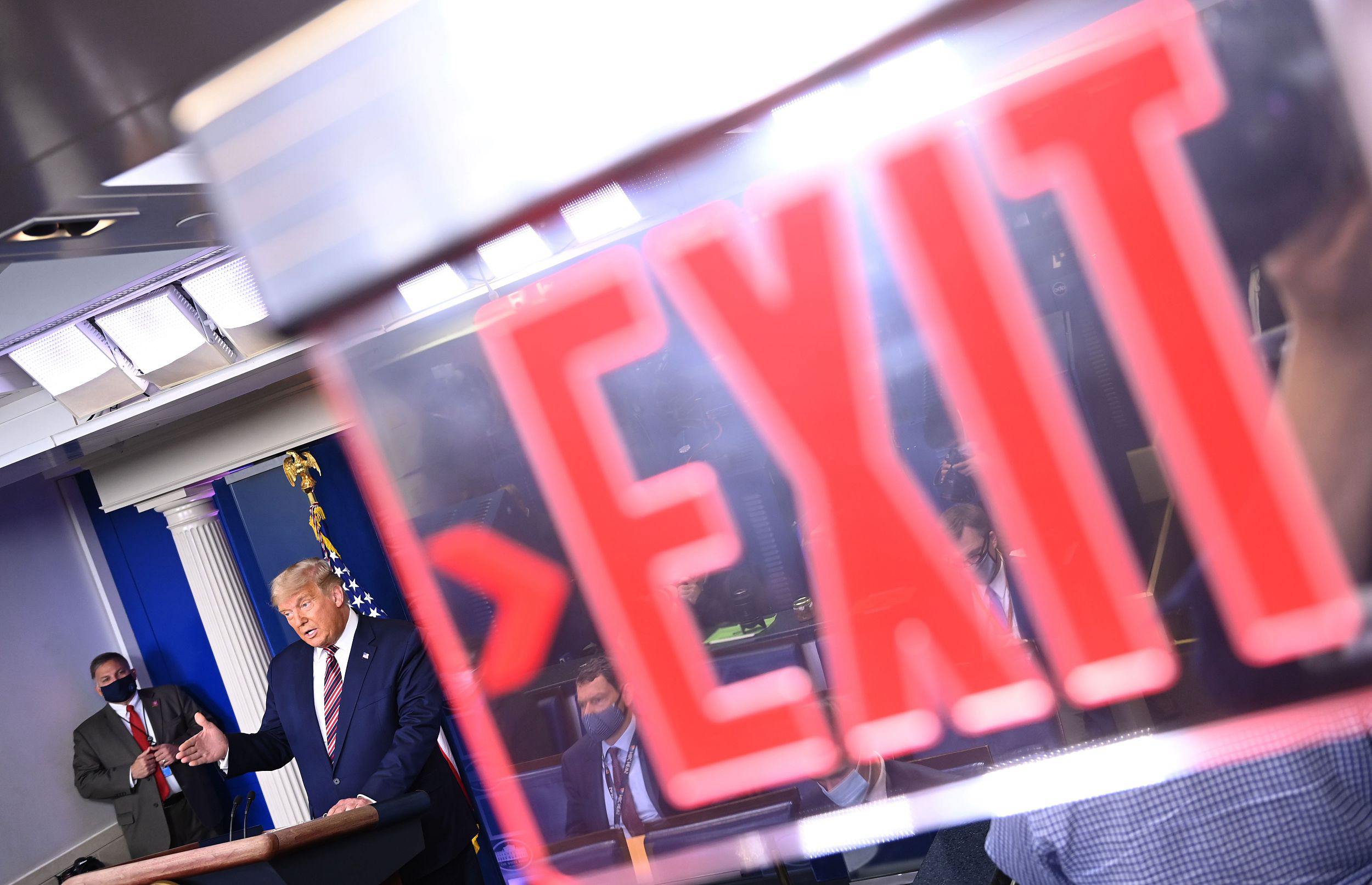 在选举夜以来的首次公开露面中,特朗普周四在白宫再次强调:“如果只算上合法选票,我很容易就赢了。如果算上非法选票,他们可能会试图窃取我们的选举。”然而经历了逐步失去优势的过程,特朗普在这场发布会上略显疲惫。离场时,特朗普用手扶住了白宫的柱子。