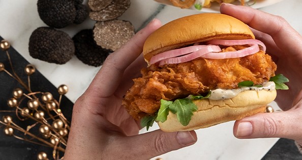 继今年年初年初推出限定炸干葱ShackMeister 汉堡以及三款全新口味奶昔后,被誉为“汉堡界特斯拉”的Shake Shack 终于又推出新品了。秋冬季换新的不仅是衣物还有食物,松露应该是其中之一。在松露当季的11月,Shake Shack 特別推出“luxury Holiday menu”企划,为各位吃货们带来了期间限定黑松露系列,包括黑松露汉堡、黑松露炸鸡以及香酥的黑松露炸薯条。