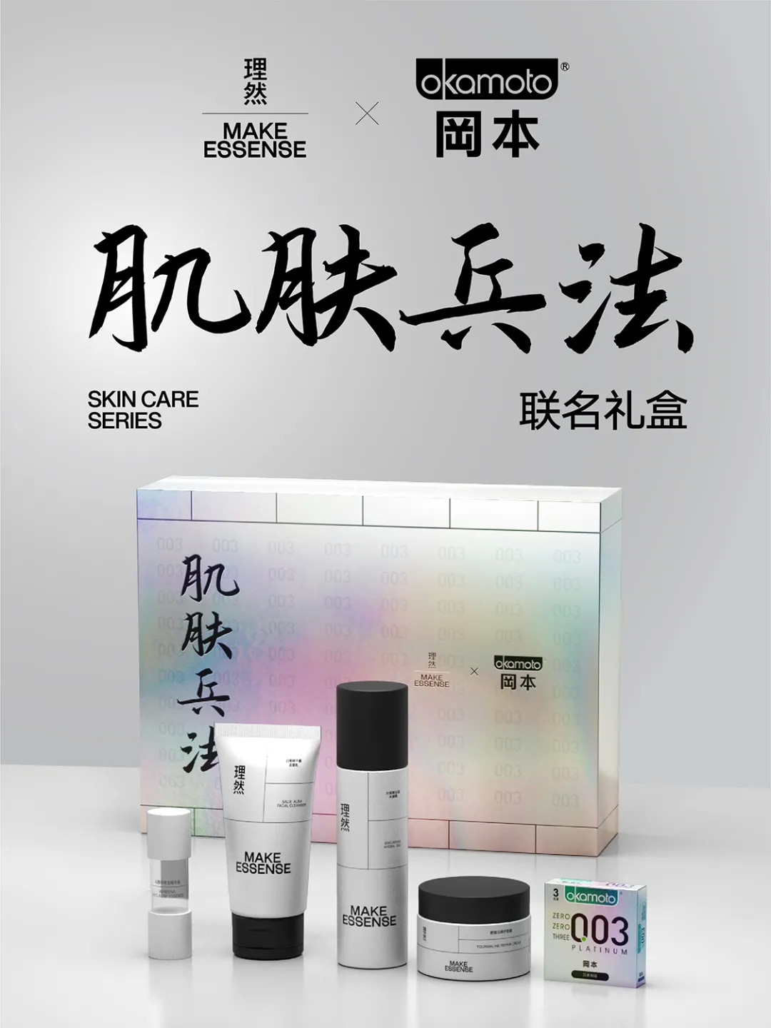 新锐男士综合个护品牌理然联手日本高端安全套品牌岡本推出了名为肌肤兵法的男士护肤礼盒,双方的联名意寓先打理颜面“修肌肤之道”,再借岡本享受“肌肤之亲”,大胆的创意在男士圈层中引起了广泛讨论和传播。