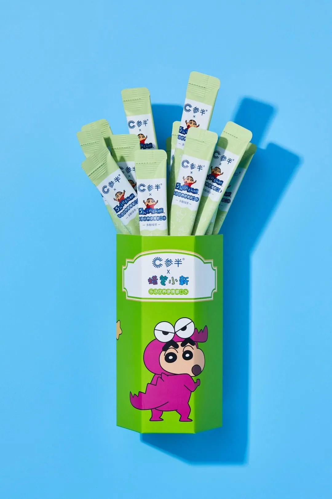 参半携手蜡笔小新推出漱口水以及便携装,漱口水中有添加鼠李糖乳杆菌,有利于重建口腔菌群、减少有害菌以及清新口气的作用。漱口水共有两款口味,桃气乌龙和多酚绿茶,产品售价在百元以内。