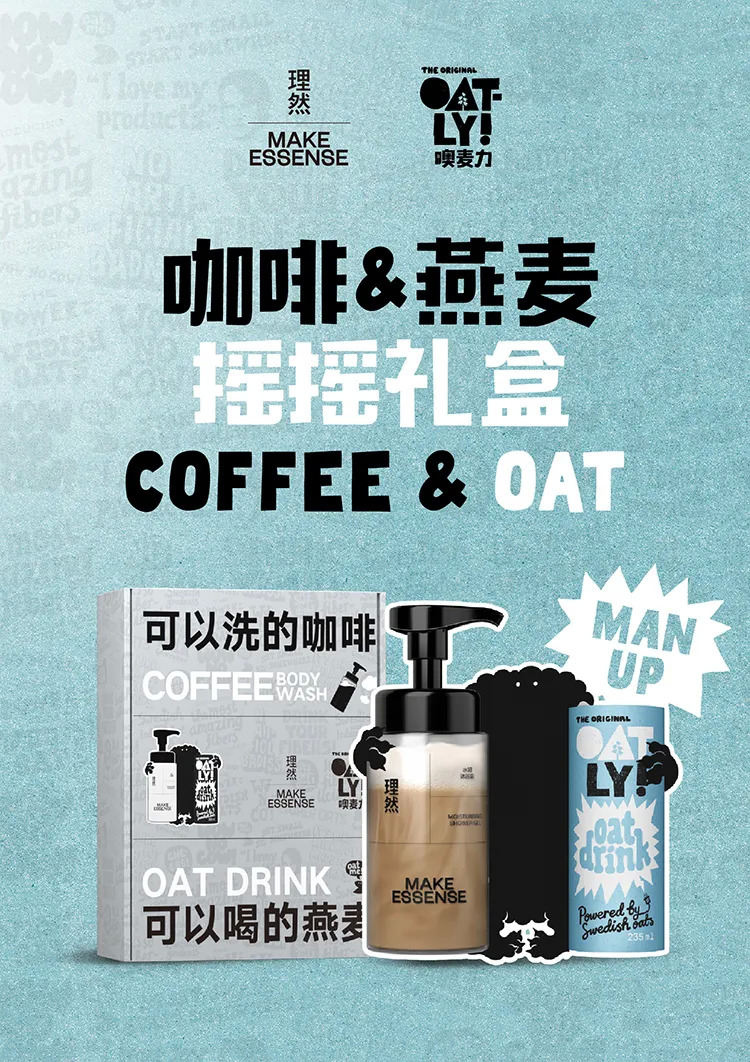 OATLY自进入中国以来,进驻了中国大陆地区逾万家咖啡馆,为广大咖啡爱好者提供了新的植物奶选择。理然以“可以洗的咖啡,可以喝的燕麦”为创意,将肌肤特饮系列的新品咖啡沐浴露与OATLY的燕麦奶组成“咖啡CP”,贴合年轻圈层中“组CP”这一热门话题,实现跨界品牌联动并打动年轻圈层。