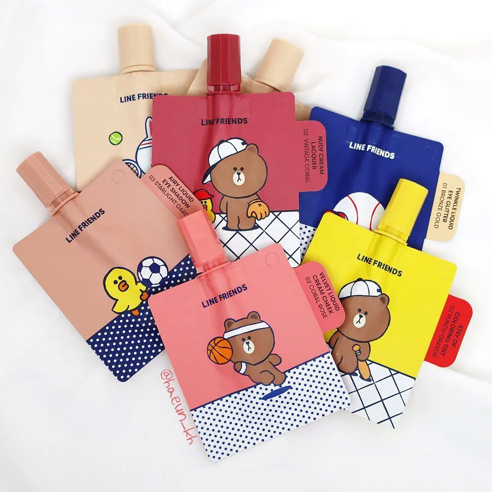 自韩国某新锐彩妆带火了吸嘴袋彩妆之后,多个品牌纷纷推出此包装的产品。最近,VT Cosmetic也联名LINE Friends推出吸嘴袋包装的合作限定产品,几毫升的小容量十分便携,轻薄的设计非常适合带出门补妆或者旅行等场景使用。