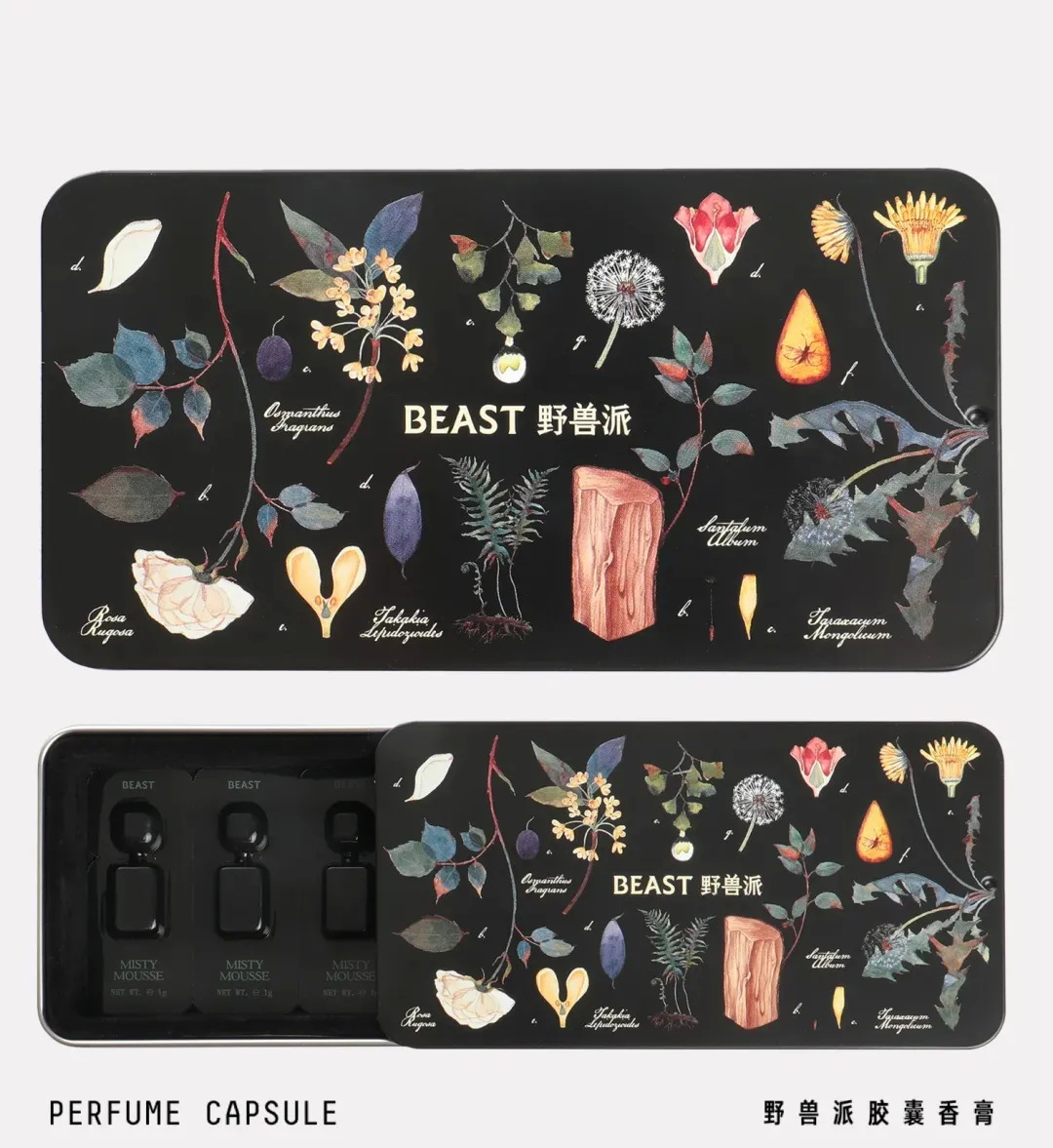 生活方式品牌野兽派The Beast推出便携胶囊香膏礼盒,胶囊可从中掰开,香膏的使用方法和香水类似,涂抹于人体靠近血管处,据品牌称可留香8小时。