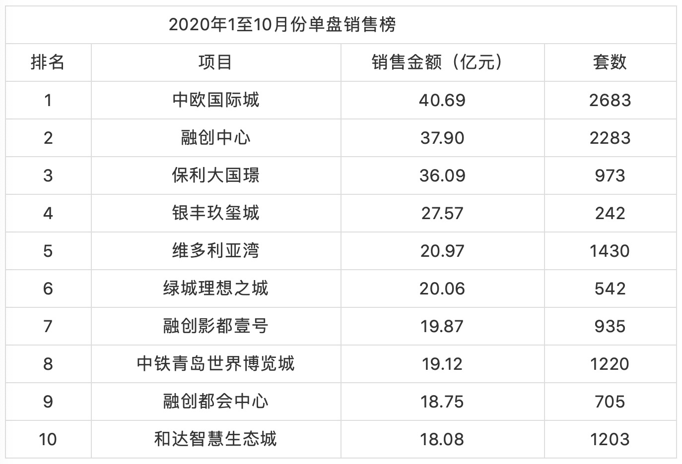 今年国际局势复杂,青岛前10个月能交上这样一份“成绩单”实属不易。然而,透过单盘成交榜单,我们仍需要看到这张“成绩单”背后的特殊性。
