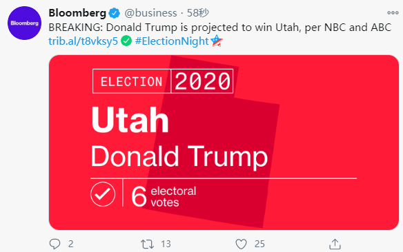 据美联社等美国媒体按照当下开票预测,截至北京时间11月4日11点36分,特朗普拿下犹他州,拜登赢下新罕布什尔州。