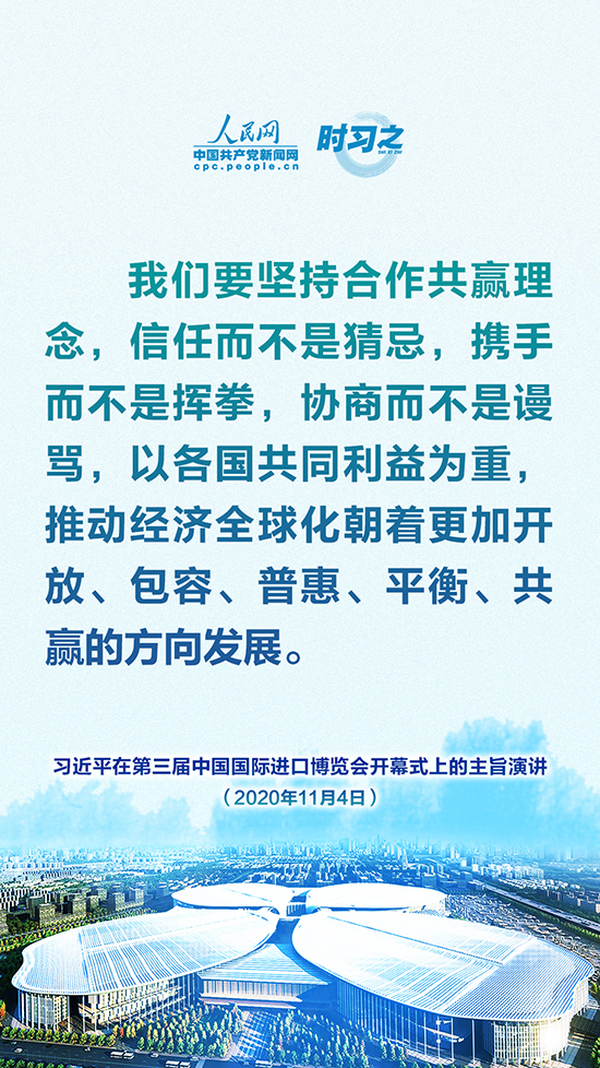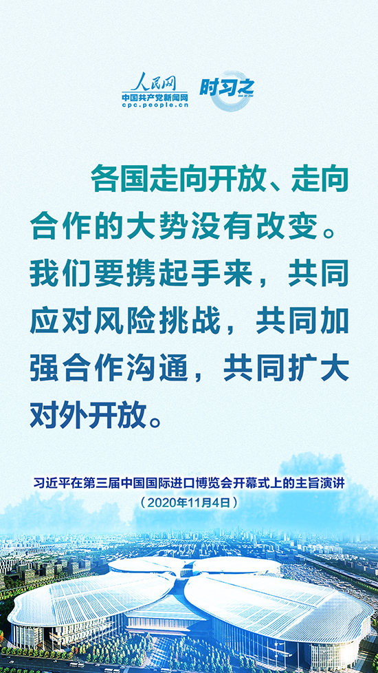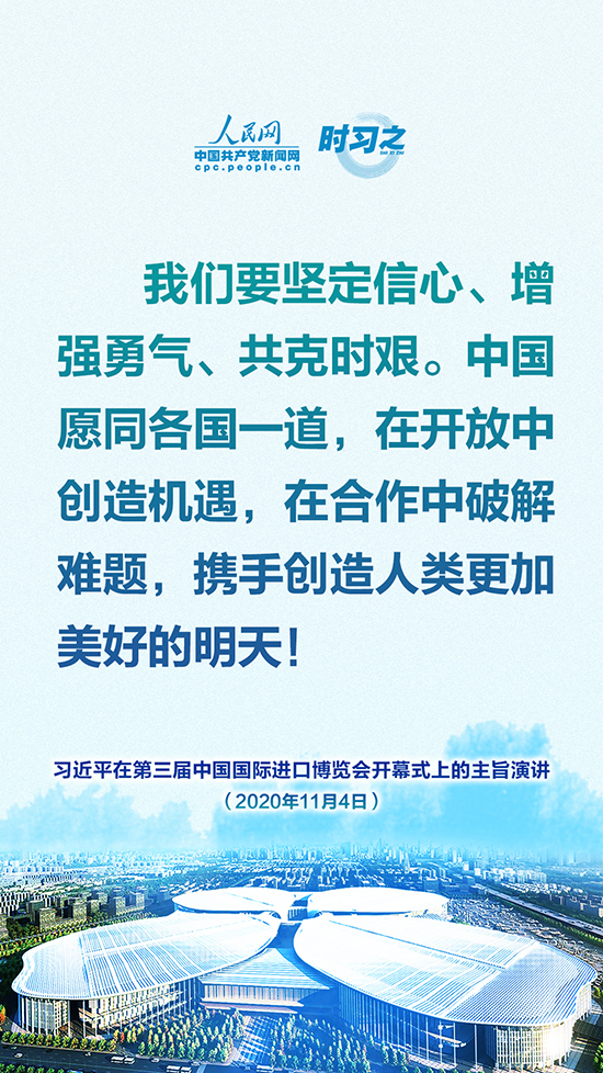 第三届中国国际进口博览会开幕式于11月4日晚在上海举行,国家主席习近平以视频方式发表主旨演讲。人民网·中国共产党新闻网“时习之”栏目制作了10张海报,带您一起回顾习近平这些掷地有声的话语。