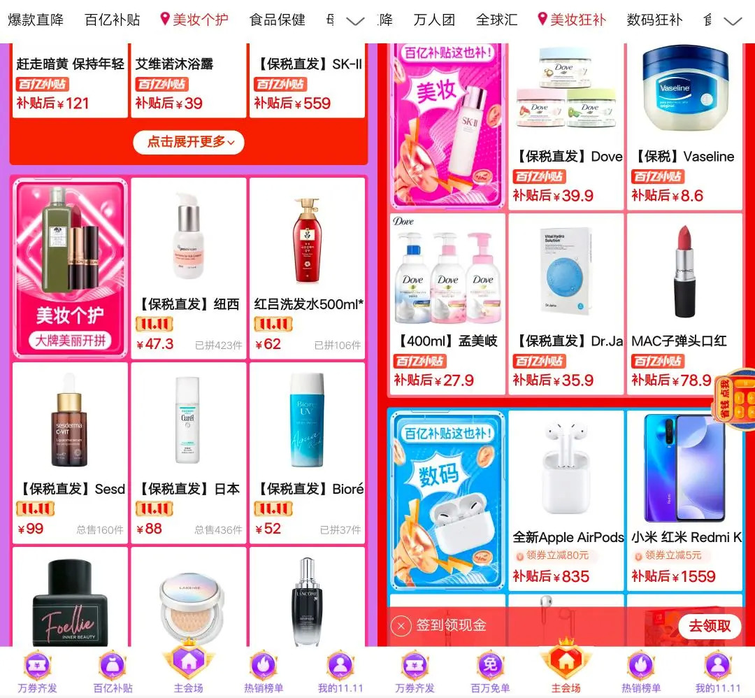 那么,在有了此前的准备后,他们在此次双11表现如何呢?我们且以美妆品类为例,就电商平台进行相应的分析。