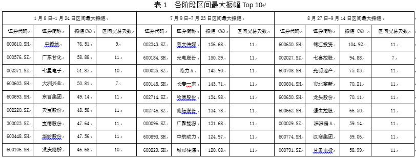 除此之外,从上述两张表单中不难看出,振幅大的基本属于题材股和概念股,尤其是涉及并购重组以及新兴产业的相关股票,而振幅小的大多数属于传统的银行、医药、消费等价值股,这也从一个侧面反映出在目前宏观经济形势较差的环境下,市场资金的一个偏好。