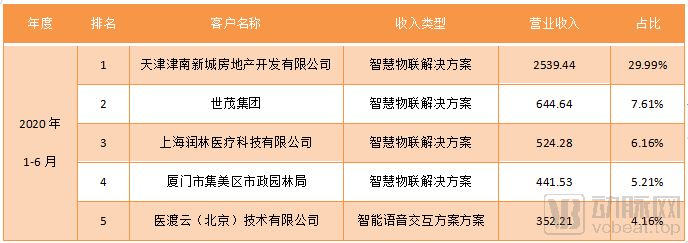报告期内前五大客户具体情况(数据来源于云知声招股书)