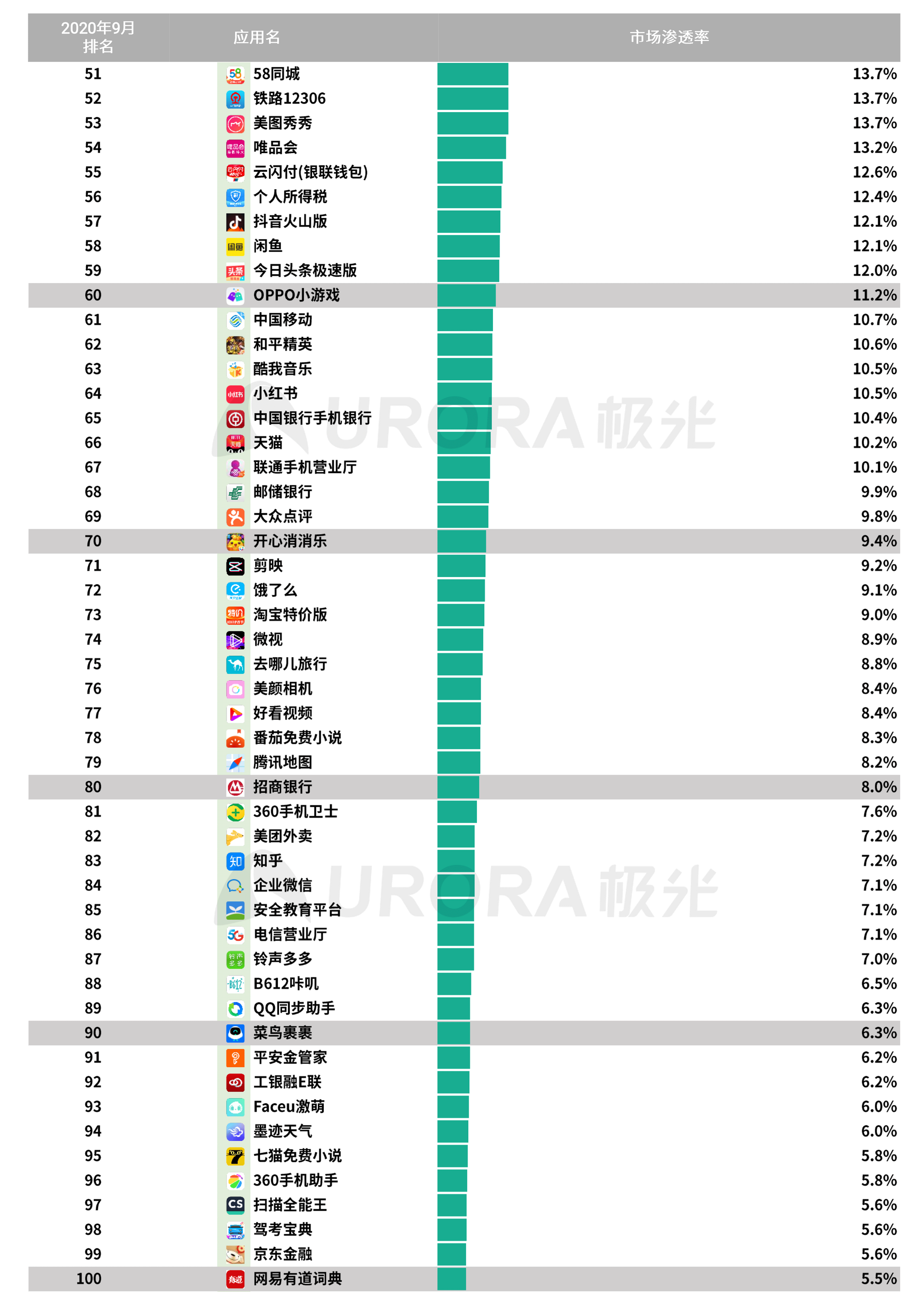 六、App渗透率总榜