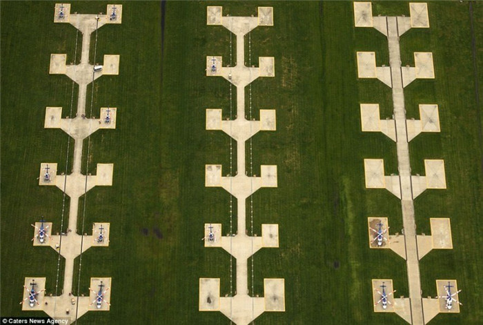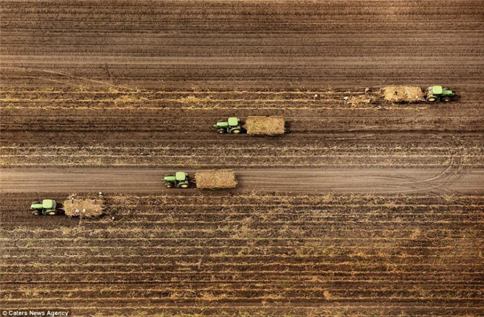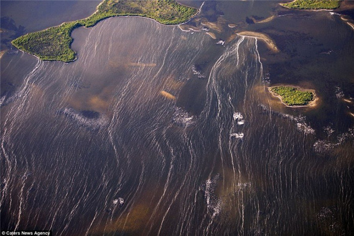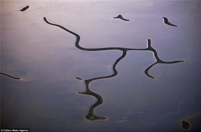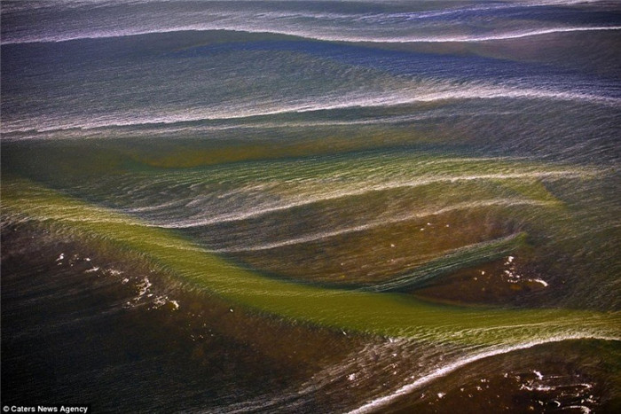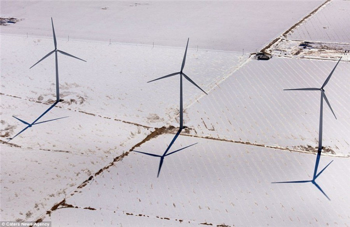 40岁的飞行员雅森·托多罗夫(Jassen Todoro)驾驶一架产自1976年的飞机每天花费4小时飞行于美国南部各州的上空,拍摄这些让人难以置信的新奇壮观的风景。图为德克萨斯州,三个巨型风力涡轮机。