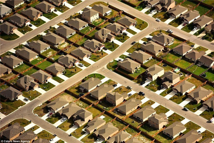 德克萨斯州郊区,数以百计的房屋。
