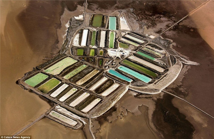 加州哈韦沙漠加的斯湖,晒盐。