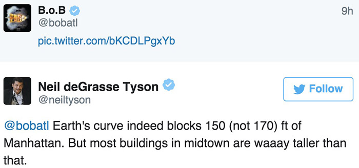 只有著名天体物理学家Neil Tyson还在勤奋的逐条反驳BOB的观点。