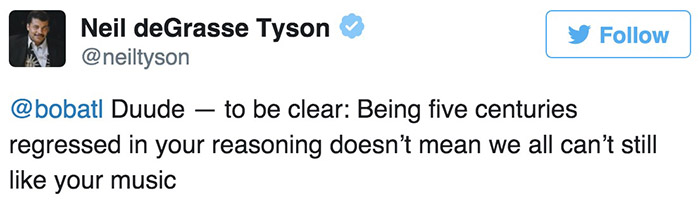 然而BOB并没有对Neil Tyson教授的评论做出回应,心疼。