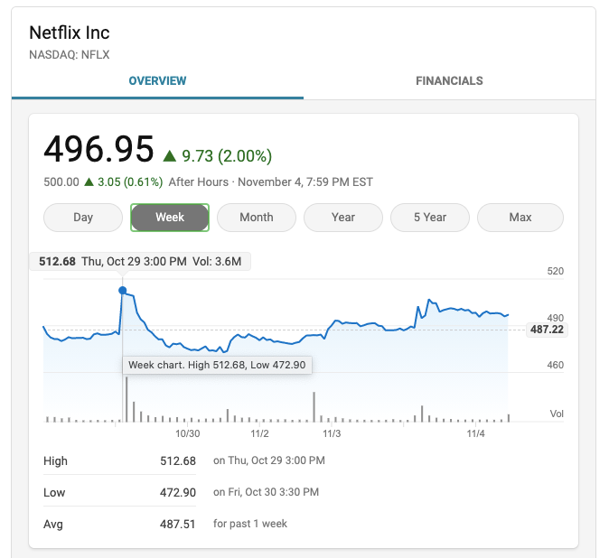 消息传出后,Netflix股价当天上涨5%,因为投资者认为这说明了Netflix对于自身内容优势的信心。但过去一周,这一涨幅已经基本被抹平。