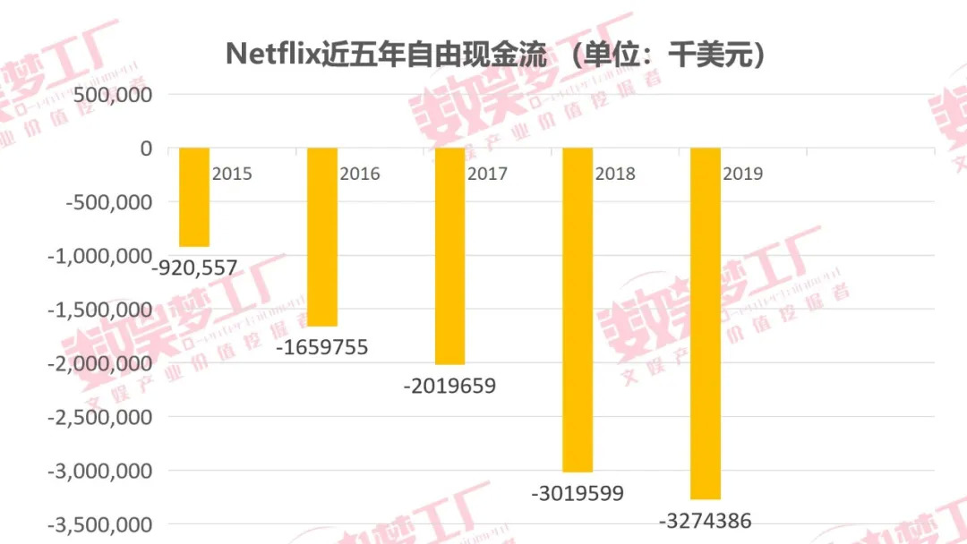 从Netflix近五年的年报可以发现,因重仓加码自制内容,且坚持只依靠会员收费的商业模式,Netflix的现金流缺口持续扩大。