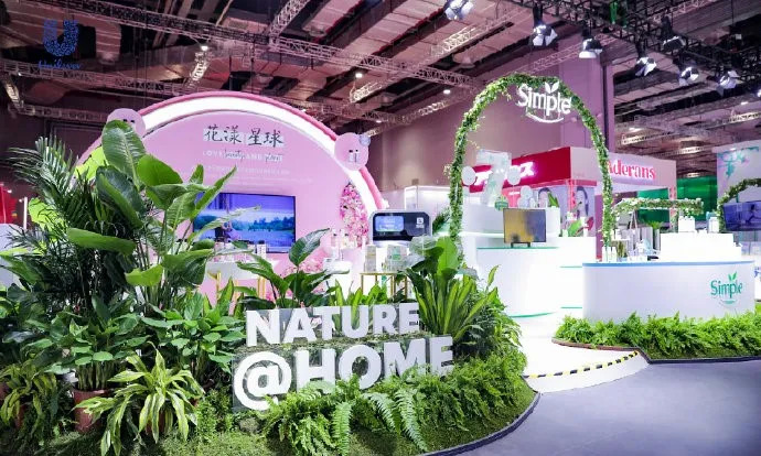在今年特殊的疫情之下,联合利华把展台设计理念聚焦在“家”的场景,围绕“美丽之家”“绿色之家”“快乐之家”三大板块,今年展品的选择也向“在家消费品”倾斜。