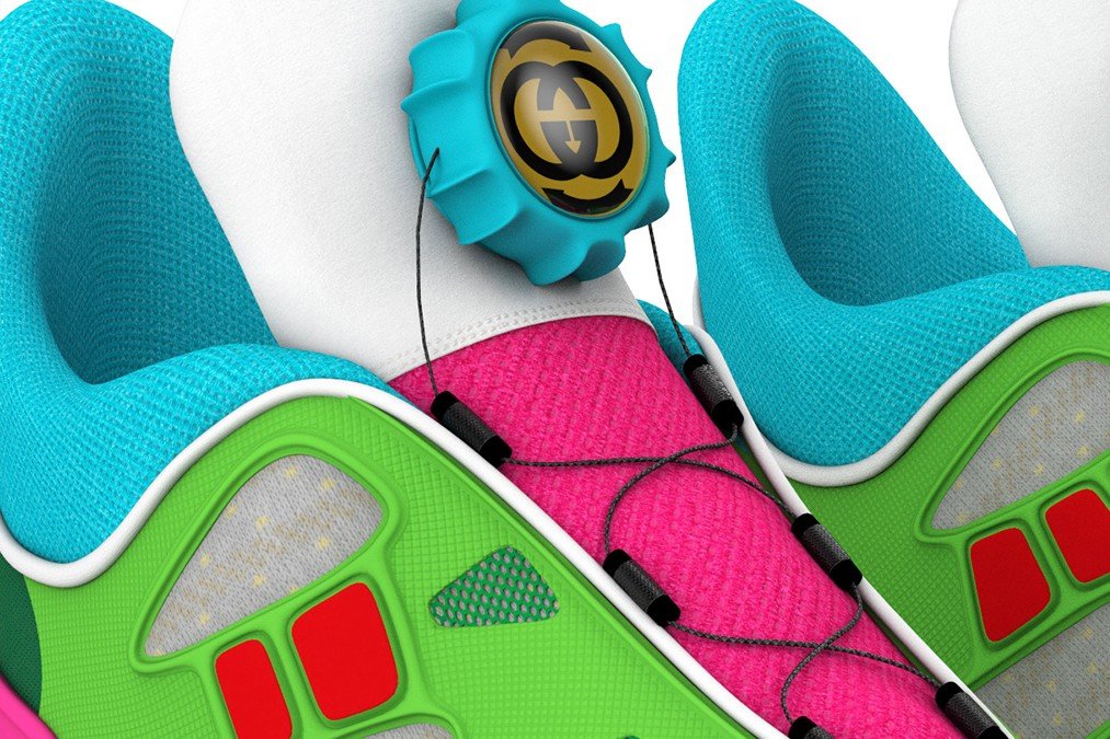 Gucci Virtual 25 由品牌创意总监 Alessandro Michele 设计,25是他最喜欢的数字,采用霓虹配色,用转盘收缩鞋带替代了传统系鞋带的方式。用户可在线以虚拟试穿,拍照或录制小视频,并分享给好友。