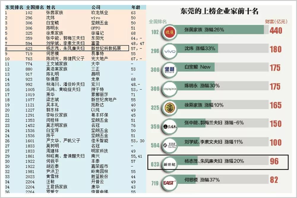 ▲2020胡润百富榜中, 杨志茂夫妇在东莞排名8 、全国排名623