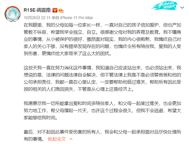其次,在前期练习生的甄选上,就要开始细致筛查,了解艺人的方方面面,发现问题也不要抱着侥幸的态度傲慢轻视。例如周震南父母的“老赖”事件,经纪公司只需要在天眼查等平台稍作搜索便可知悉。